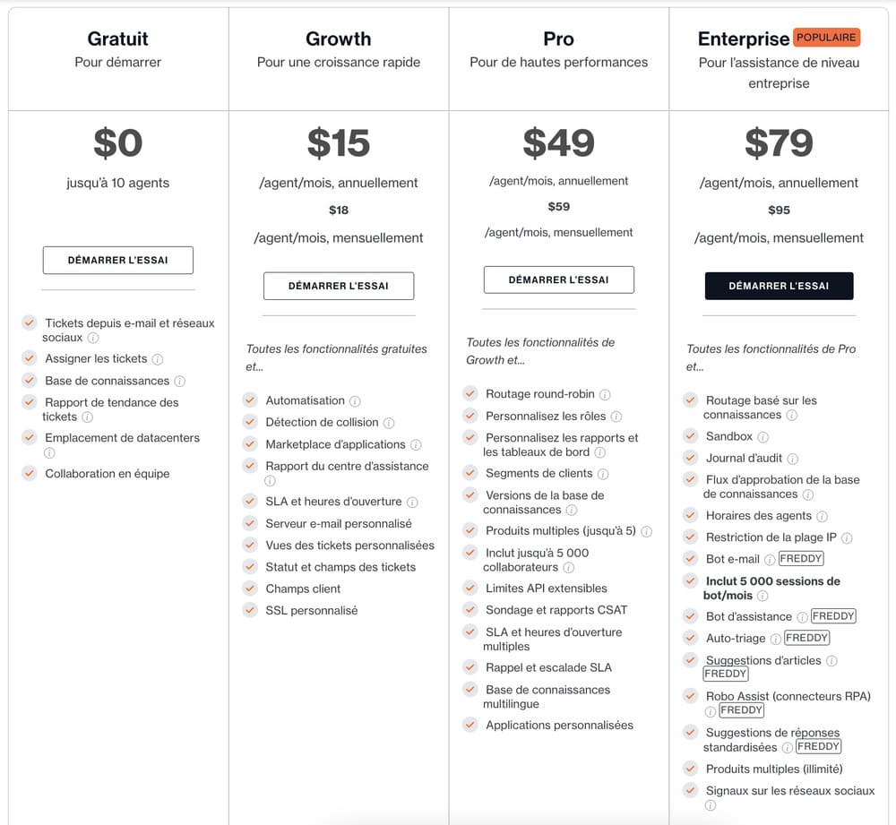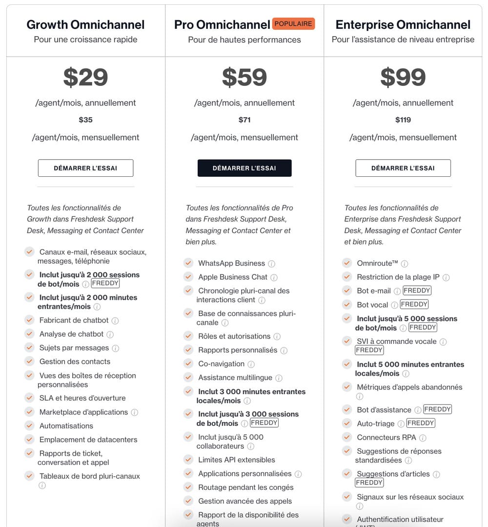 There is a free Freshdesk plan. But to unlock additional features, you can opt for one of the four paid options. If you want to combine Freshdesk, Freshchat, and Freshcaller into one service, you can choose from two omnichannel plans and get a 40% discount.