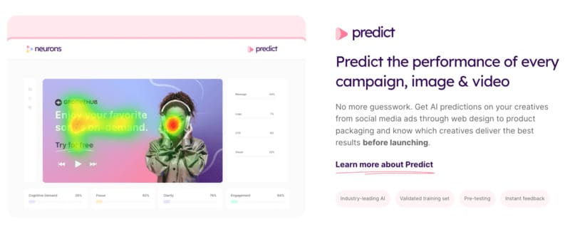 In short, Neurons offers a complete suite of AI-based tools that can significantly improve the performance of your marketing efforts and creations. This suite of tools uses AI to provide you with valuable insights and help you make informed decisions based on data. From design to performance, Neurons is here to help.