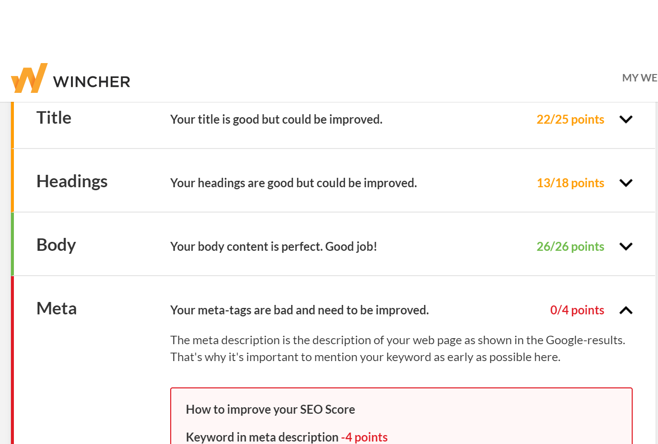 Wincher offers a free and unlimited tool that allows you to determine how well your pages are optimized for specific keywords. An on-page SEO tool gives you a score and accurate suggestions on how you can fix potential issues.