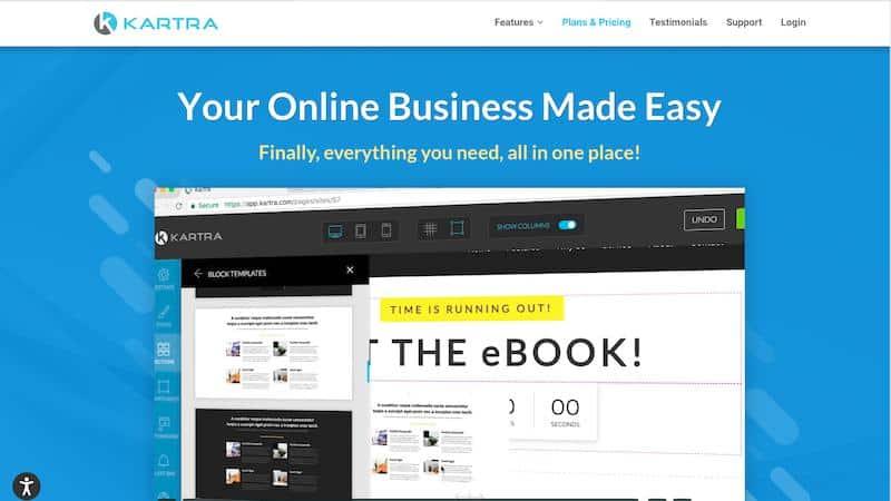 Kartra offers a free training program for new users to enable them to become familiar with the software. It also has a live chat option, a ticketing system, and a Facebook group to answer customer questions.