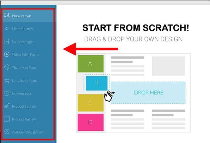 There are tons of templates for various pages, products, forms, including forced sales pages, video sales pages, product launches, and more.