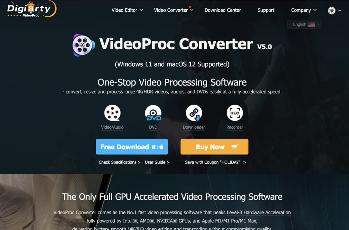VideoProc is a simple but powerful video/audio/DVD converter that also comes with solid video editing, downloading, and recording functions. It performs these functions at a fully accelerated speed and is capable of processing 4K/8K/large videos without freezing. It offers a free solution for Windows and Mac platforms.