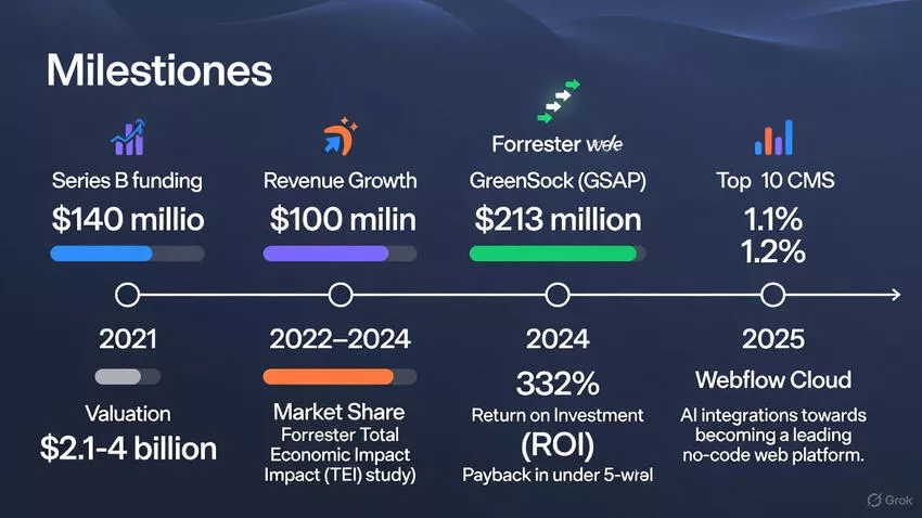 These figures show that Webflow is no longer a “small” CMS, but a solid SaaS platform, with a dynamic ecosystem and continuous growth.