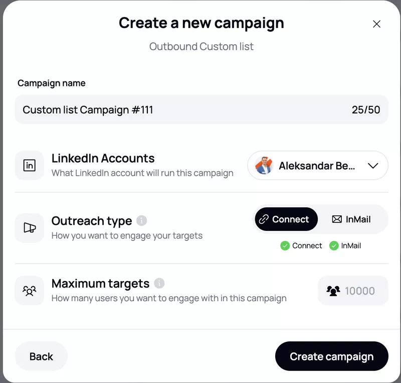 Création de campagnes depuis les recherches Sales Navigator : il suffit de copier-coller l’URL pour transformer une recherche en campagne ciblée, sans manipulation complexe.