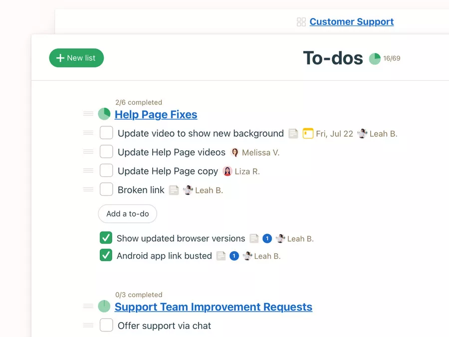 To‑dos (tâches) : listes, affectation des tâches, dates limites, commentaires.