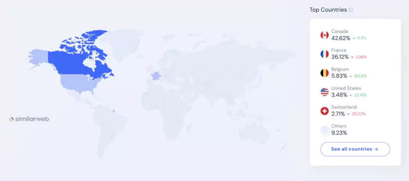 - 4,5 millions de visiteurs uniques par an principalement dans les pays francophones (Canada, France, Belgique)