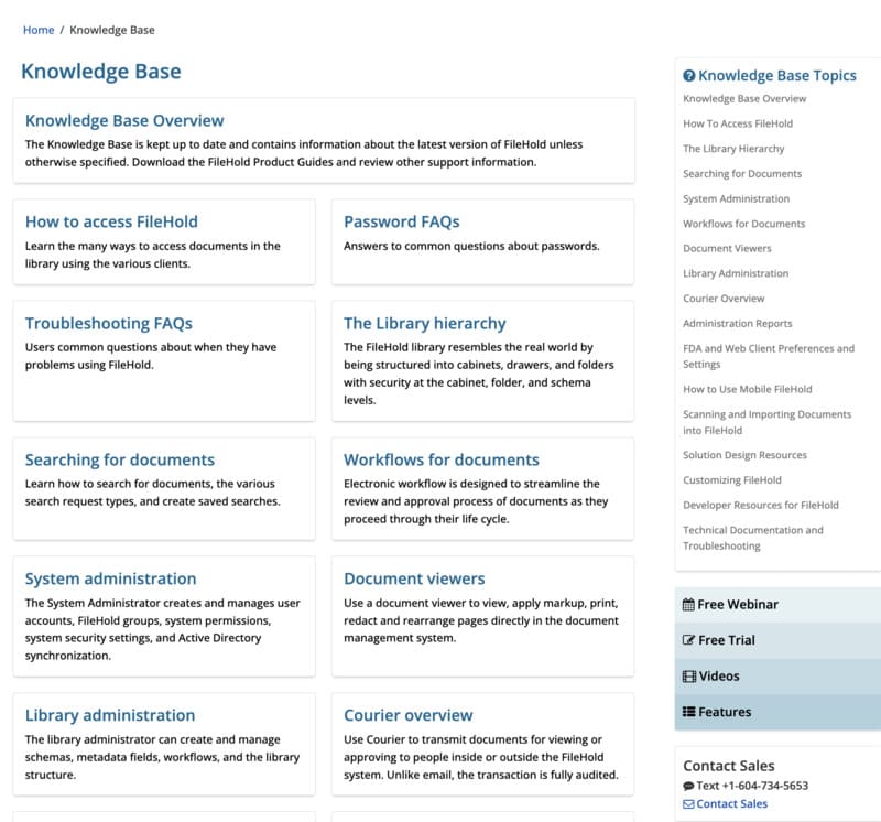 Filehold propose un package de support appelé FileCare qui fournit un support technique et des mises à jour logicielles. Cette formule de support est disponible pour les versions Express et Enterprise. FileCare comprend également un support tel que :