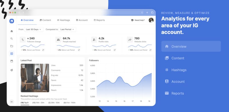 Flick fournit des analyses détaillées pour évaluer la performance de vos hashtags et publications sur Instagram.