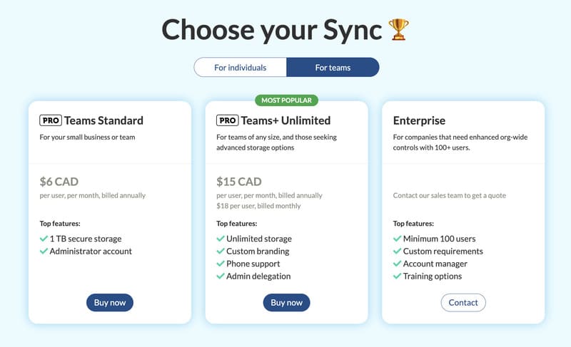 Sync.com est un service de stockage cloud canadien qui se concentre également sur la confidentialité et la sécurité des données de ses utilisateurs.