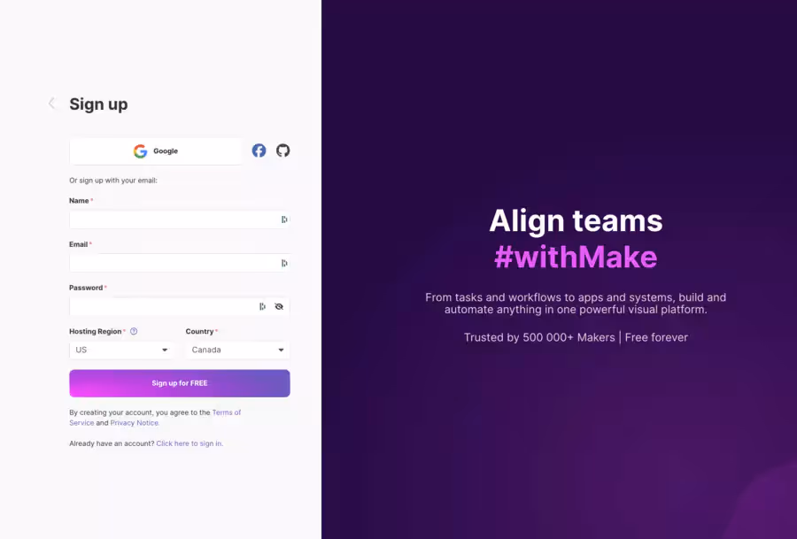 - Bien que Make respecte des normes élevées, certaines exigences légales peuvent varier selon le pays : transferts internationaux de données, législation locale en matière de protection. Les clients doivent s’assurer que leur usage est compatible avec la loi de leur territoire.