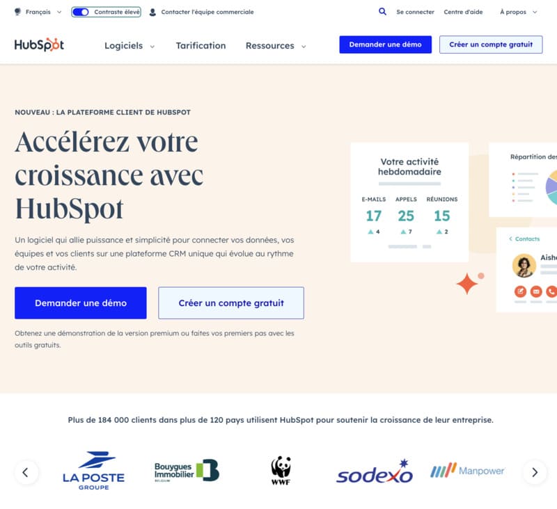 HubSpot CRM est une plateforme complète de gestion de la relation client, appréciée pour son interface intuitive et ses riches fonctionnalités. Elle convient particulièrement aux entreprises cherchant une solution tout-en-un pour le marketing, les ventes et le service client.
