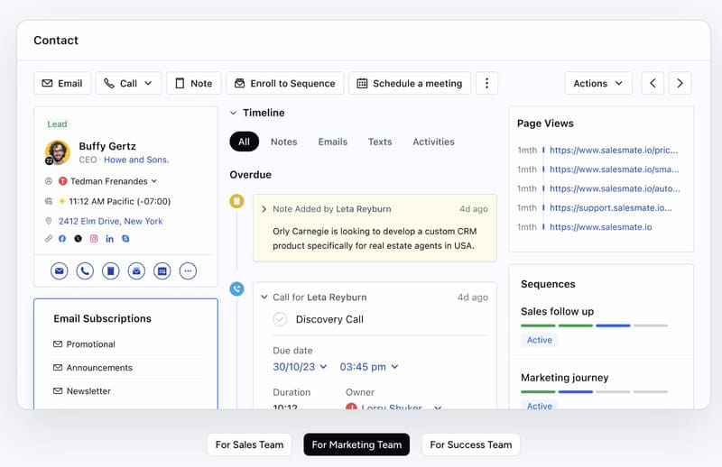 Salesmate propose une gestion complète des contacts, permettant une vue globale et un suivi efficace.