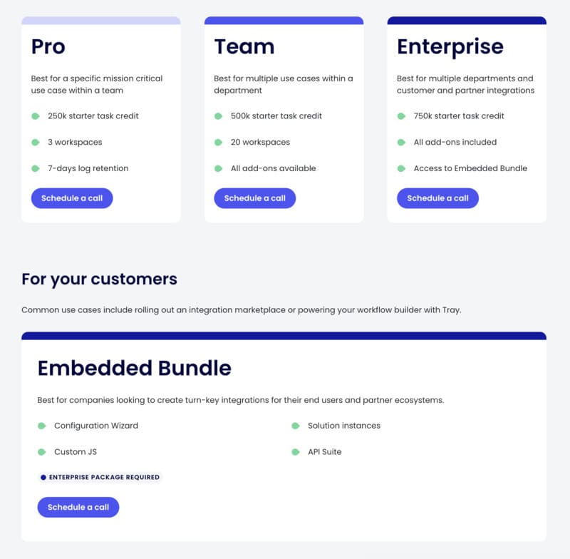 Les fonctionnalités étendues de Tray.io, allant de la création de workflows visuels à l'automatisation no-code, en font un outil polyvalent adapté à un large éventail d'applications d'entreprise.